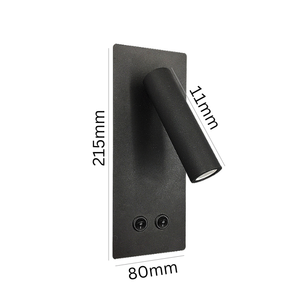 The LLD RL088 Reading Light Black is a sleek and functional wall-mounted reading light designed for modern bedside and bedroom use. Its adjustable cylindrical spotlight delivers a focused 3W LED frontlight at a 30° beam angle, while the 6W backlight provides a soft ambient glow behind the panel for a comfortable, layered lighting effect.