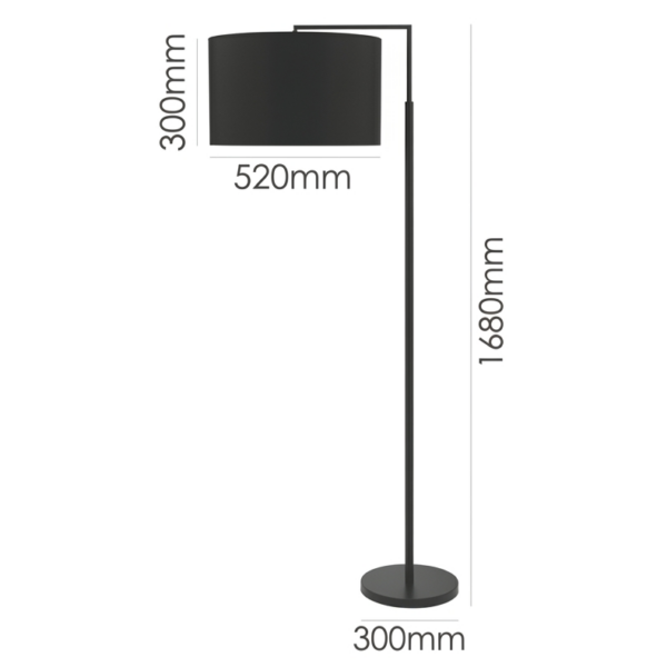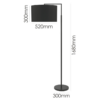 | Height: 1680mm Width: 540mm Shade: 470mmx470mmx300mm Colour/Material: Black Powder Coated Base / Black Drum Shade |