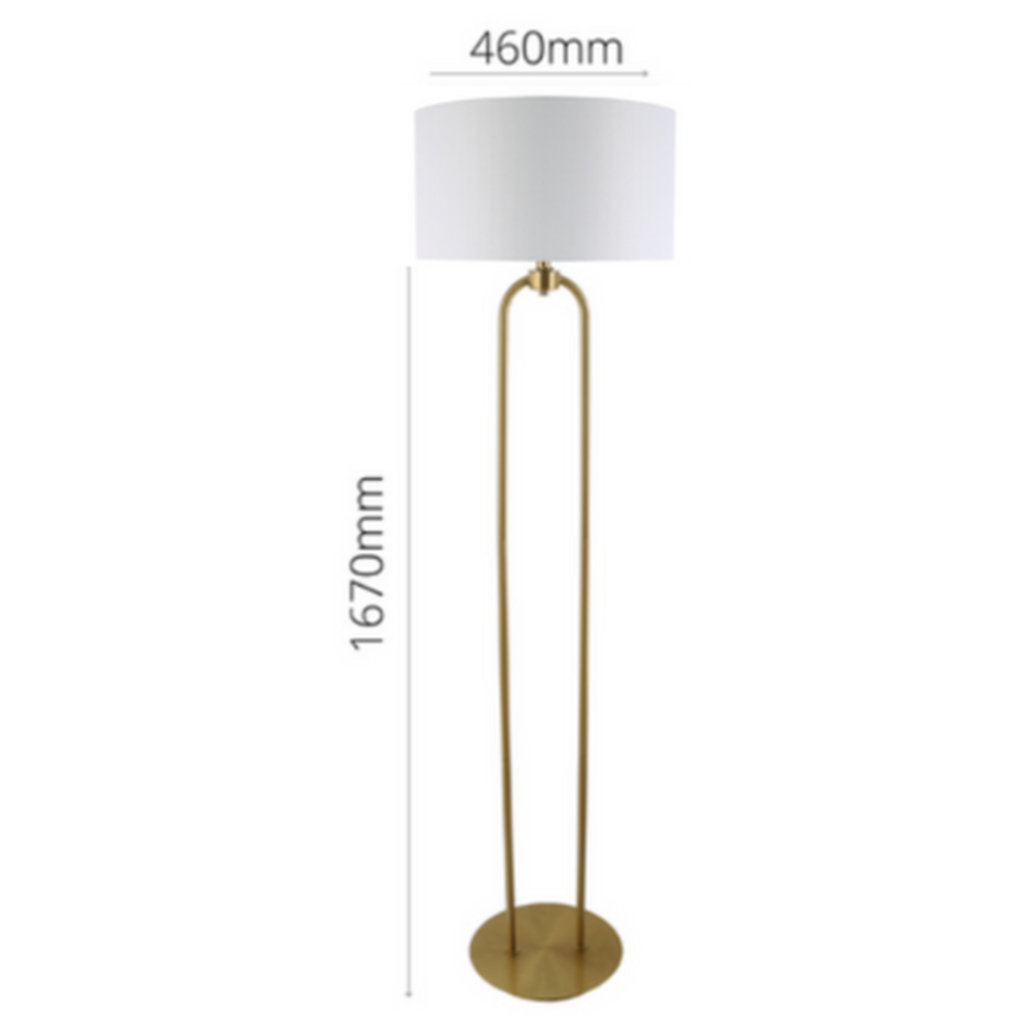 LLF Braden White Floor Lamp with antique brass double arch base and white linen shade