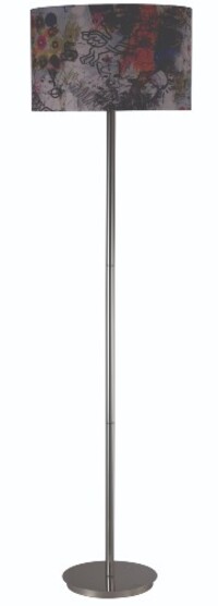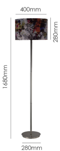 The LLF Flynn N Abstract Floor Lamp is a bold artistic statement for any interior space. Standing at 1680mm tall with a 400mm width, its slender nickel base provides a clean, understated foundation that lets the eye travel upward to the showstopping multi colour abstract printed shade.