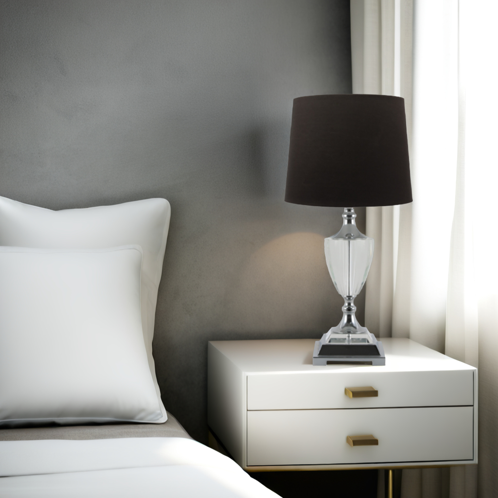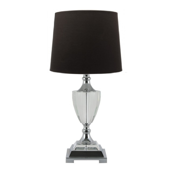 Colour/Material: Crystal / Chrome Nickel Base, Black Tapered Shade