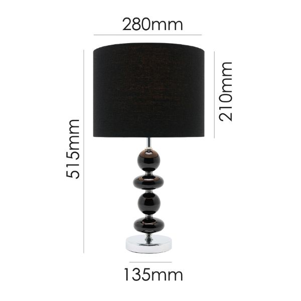 LLT Allsorts Black Glass Table Lamp is a refined and modern statement piece designed to elevate your décor. The lamp features a stacked black-tinted glass base paired with a polished chrome foundation, reflecting both light and luxury. Its black fabric drum shade offers a soft, ambient glow that enhances any space with warmth and sophistication.