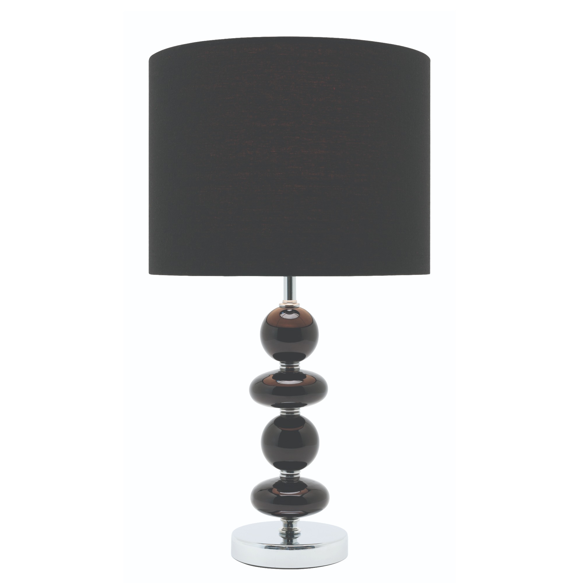 Colour/Material: Chrome / Black Tint Glass Base, Black Drum Shade