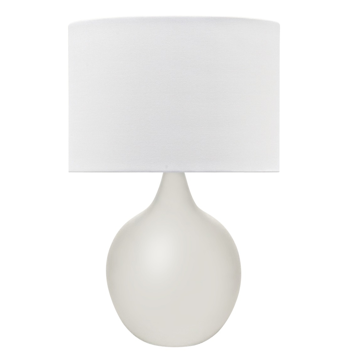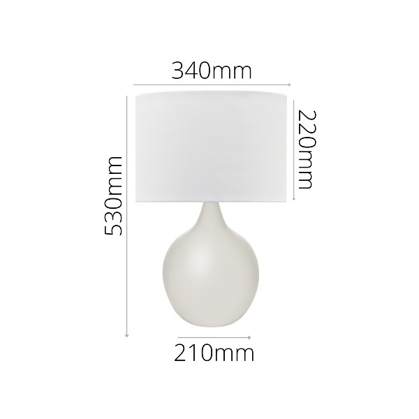 Colour/Material: White Gloss Coated Metal Base/ White Linen Drum Shade