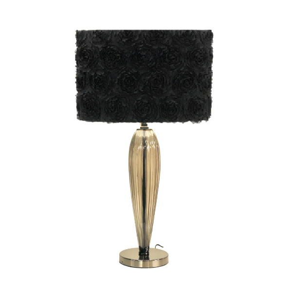 This LLT Demi Black Deluxe Table Lamp features a beautiful smoke glass base with a ribbed texture. This vertical detail creates a sleek and modern look.