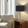 | Height: 650mm Width: 355mm Colour/Material: Black Chrome Smoke Glass Base, Black Drum Shade |