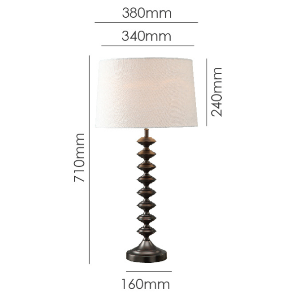| Height: 710mm Width: 380mm Shade: 340x380x240mm Colour/Material: Black Nickel Matt Base / White shade |
