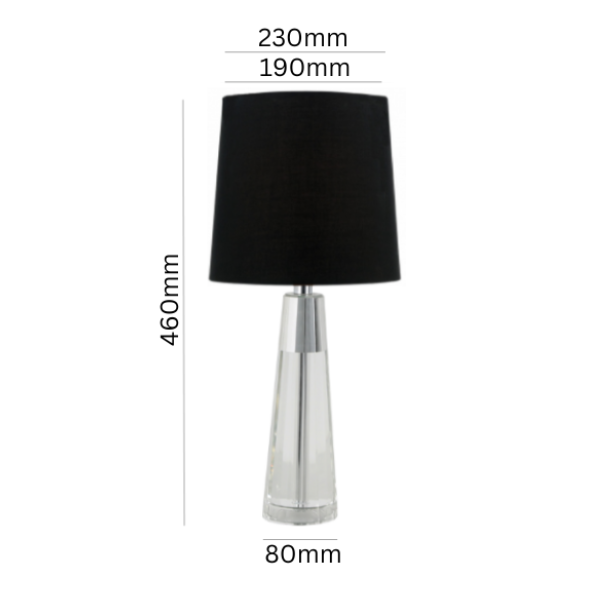 Colour/Material: Crystal /Chrome Base, Black Shade