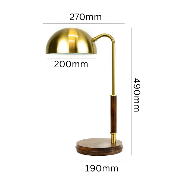 The LLT Felix Table Lamp blends modern style with warm, natural tones. Its bronze metal dome shade and brown wooden base create a balanced mix of elegance and simplicity. The curved brass arm adds a refined touch, while the round base gives it stability and charm.