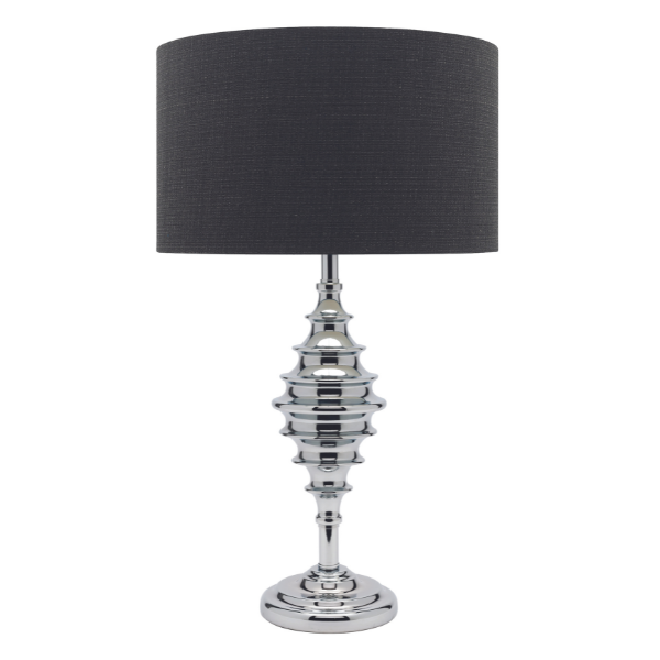 | Height: 640mm Width: 370mm Base: 170mm Shade: 370x220mm Colour/Material: Chrome Base / Black Textured Drum Shade |