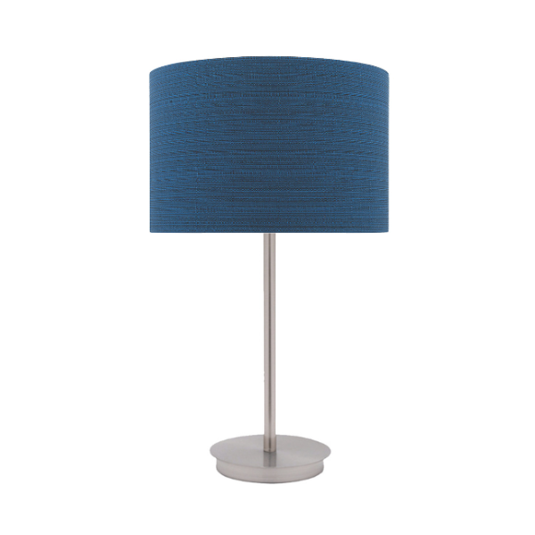 This LLT Flynn Blue Table Lamp features a slim brushed nickel stem and a sturdy round base. This minimalist metallic frame creates a clean and modern silhouette for your home.