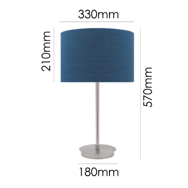 | Height: 570mm Width: 330mm Shade: 330x210mm Colour/Material: Nickel / Blue Textured Drum Shade(Velcro Tape) |