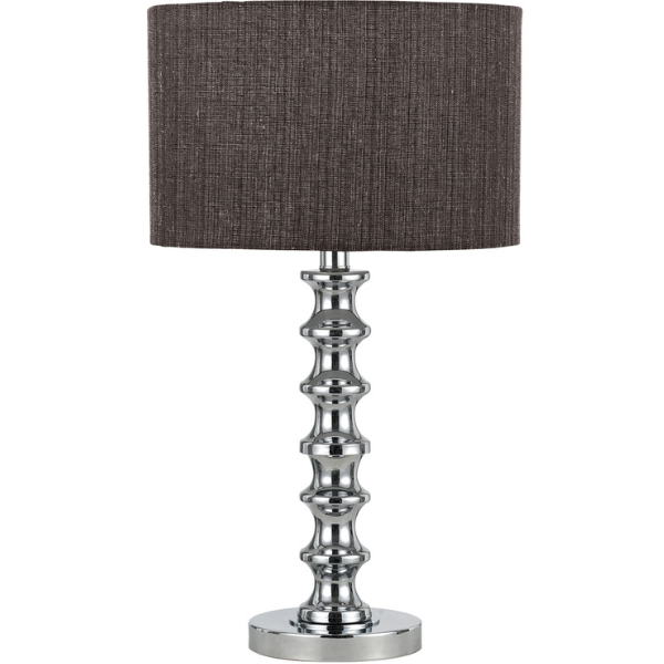 | Height: 550mm Width: 320mm Base: 152mm Shade: 320x200mm Colour/Material: Chrome / Grey Blue Multi Linen Shade |