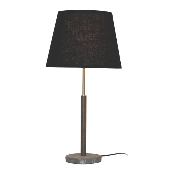 This LLT Jenkins Black Table Lamp features a solid foundation made of premium unpolished marble. The elegant slim stem combines a sleek nickel accent with a warm timber finish.