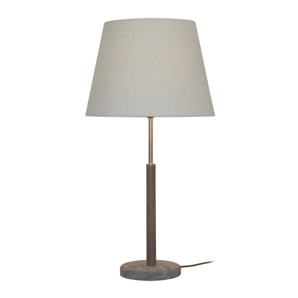 This LLT Jenkins White Table Lamp features a solid foundation made of premium unpolished marble. The elegant slim stem combines a sleek nickel accent with a warm timber finish.