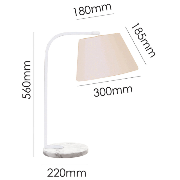 Colour/Material: Marble Finish / White Painted Metal Base, Natural Round Tapered Shade