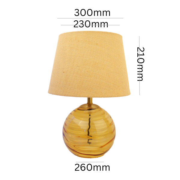Colour/Material: Coffee Tinted Glass Base, Hessian Linen Round Tapered Shade