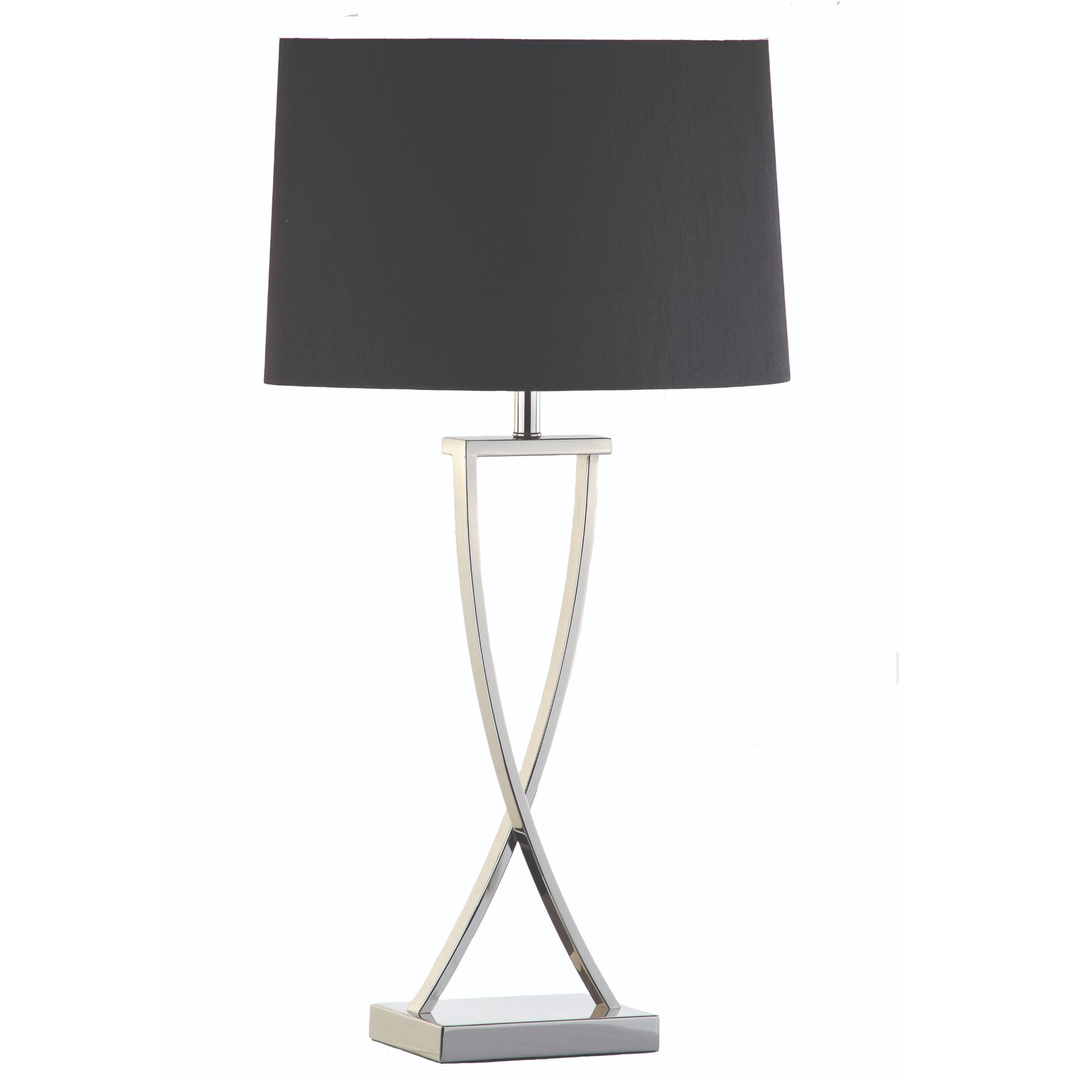 | Height: 740mm Width: 390mm Base: 180mm Shade: 380 x 420 x 290 mm Colour/Material: Chrome Base, Black Tapered Oval Shade |