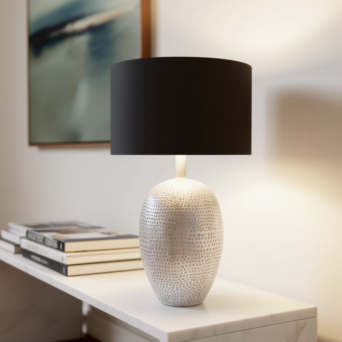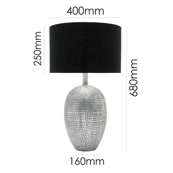 Colour/Material: Polymarble Brushed Chrome with Indent Detail / Black Textured Shade