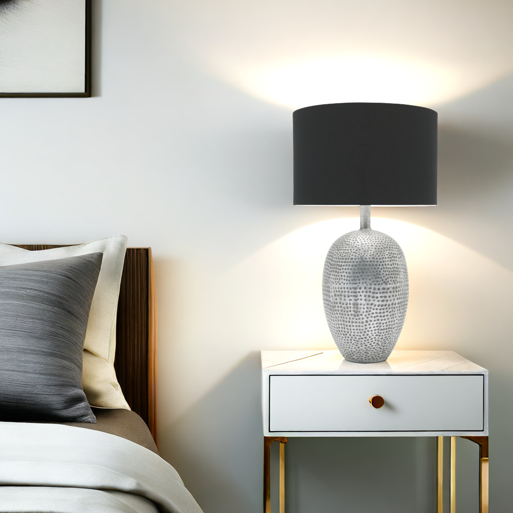 Colour/Material: Polymarble Brushed Chrome with Indent Detail / Black Textured Shade
