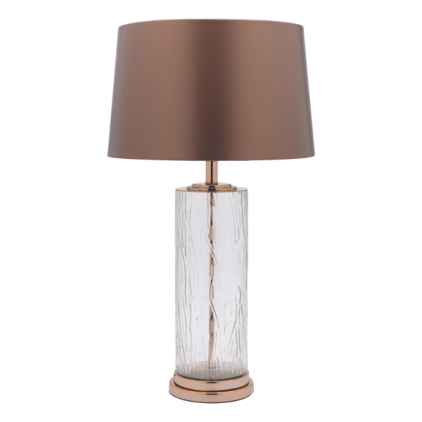 Colour/Material: Gold Plated / Ripple Glass Base, Chocolate Faux Silk / Gold Satin Lined Round Tapered Shade
