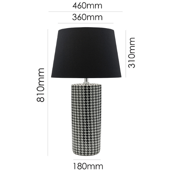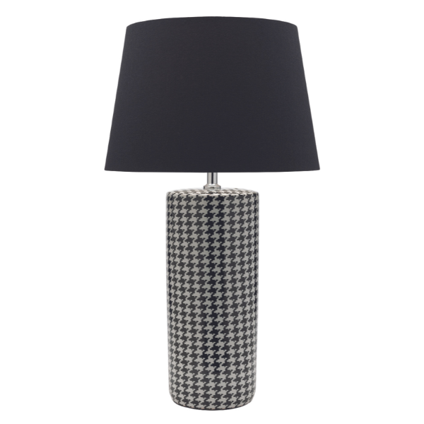 Colour/Material: Black and White Houndstooth Ceramic / Black Round Drum Shade