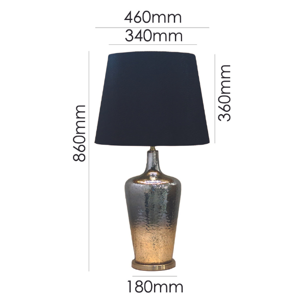 Colour/Material: Gold Plated / Mercury Gold / Smoked Gradient Glass Base, Black Patterned Velvet Round Tapered Shade