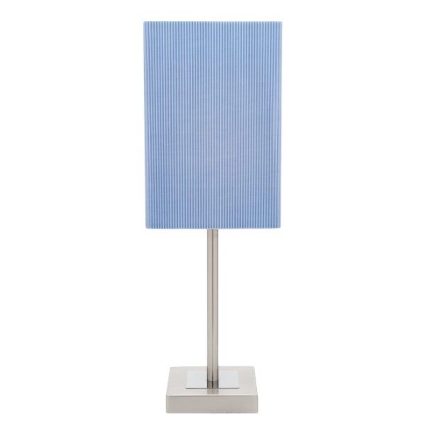 The LLT Nina Blue Table Lamp is a beautiful blend of simplicity and elegance. Its nickel-finished base offers a clean, modern look, while the blue faux silk shade adds a calm and stylish accent to your space.