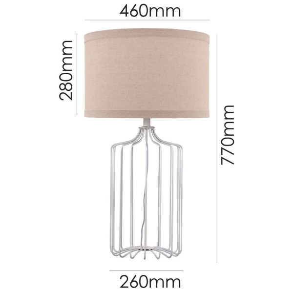 Colour/Material: White Painted Metal Base / Biscuit Linen Drum Shade with Trim