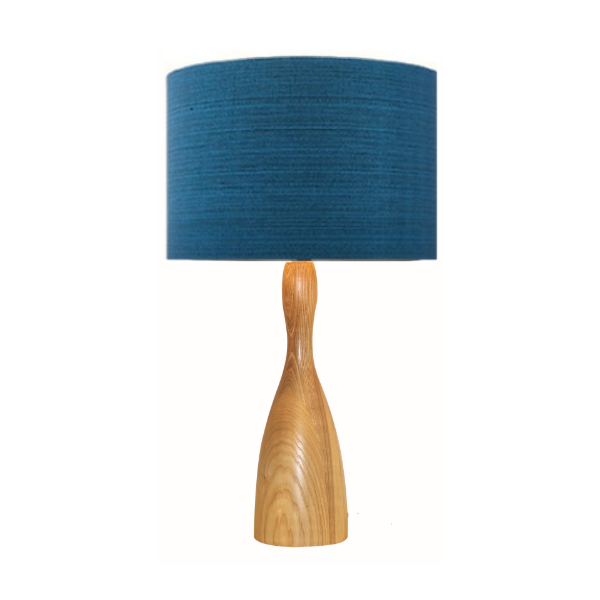 The LLT Schroder Blue Table Lamp stands 600mm tall, featuring a beautifully contoured base with a warm faux timber finish.