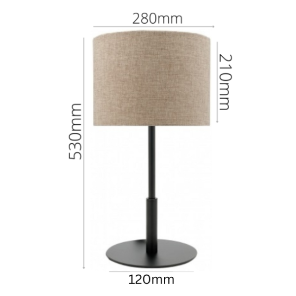 Colour/Material: Black Powder Coated Metal Base / Linen Taupe Shade