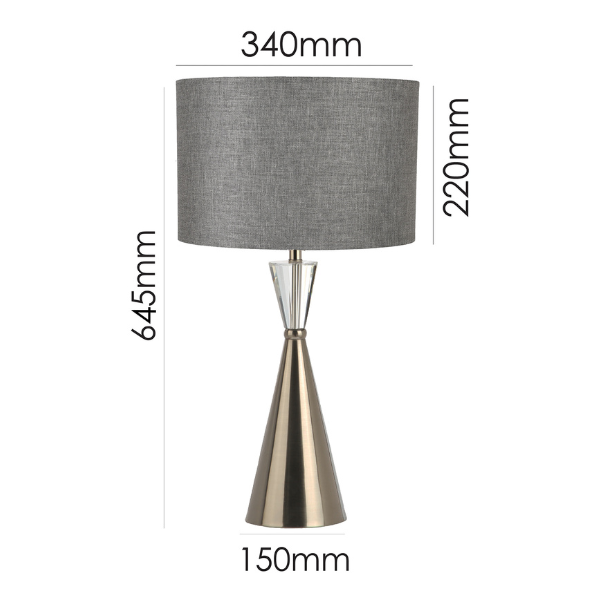 Colour/Material: Brushed Nickel / Crystal Base, Charcoal Linen Drum Shade