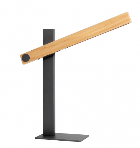 This LLT Zero Grey Table Lamp features a minimalist grey painted metal frame. This sleek vertical stand supports a unique timber finish light arm.