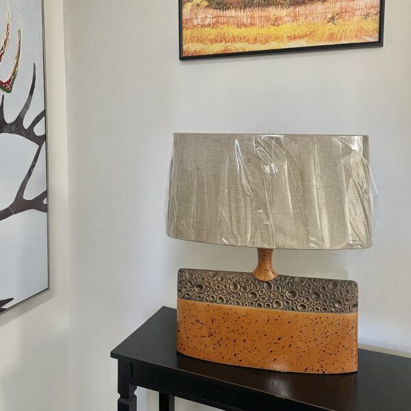 The LLT VOLCANO Ceramic Table Lamp is a bold statement piece that combines textured ceramic craftsmanship with a warm linen shade. Its unique volcano-inspired base features earthy tones and artistic detailing, creating a lamp that feels natural yet refined. The oval linen shade softens the light, making it ideal for creating a calm and welcoming atmosphere.