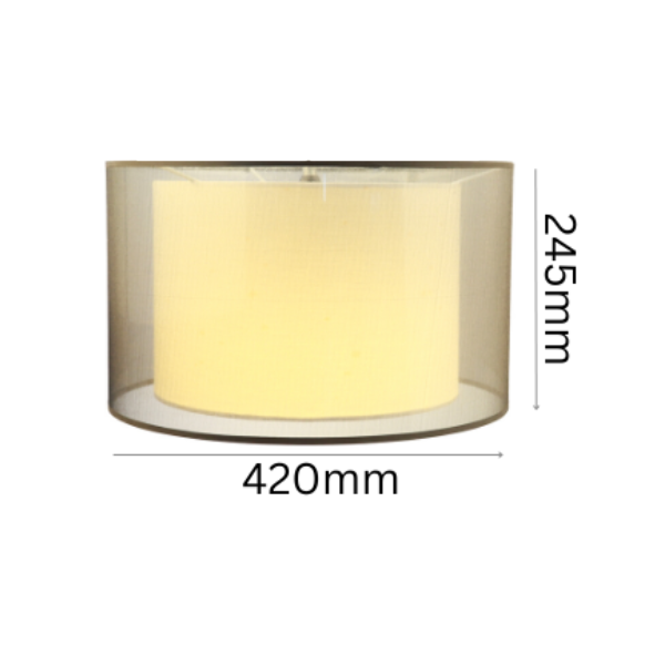 Designed to elevate any space, this two-layer fabric shade combines a linen inner layer with a delicate sheer outer layer, creating a gentle, cloud-like appearance and a richer, more dimensional glow. Perfect for bedrooms and living areas where you want soft ambience.